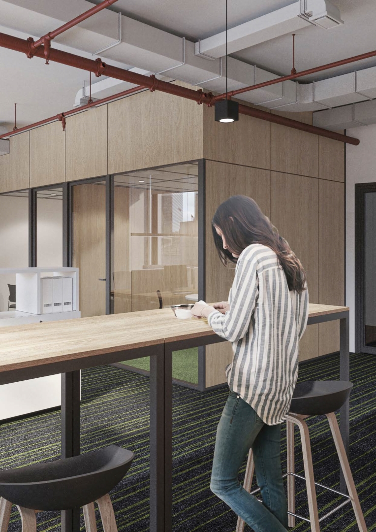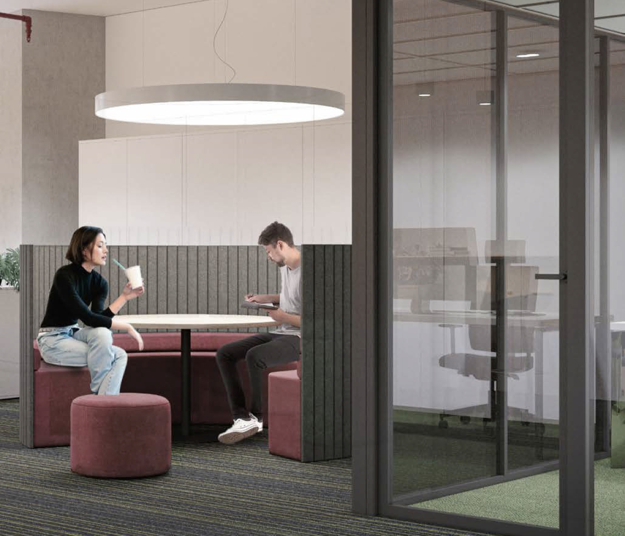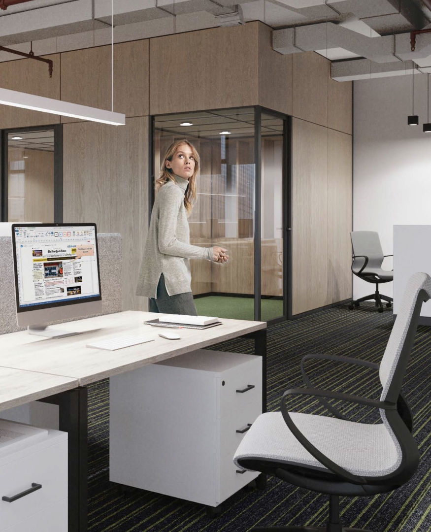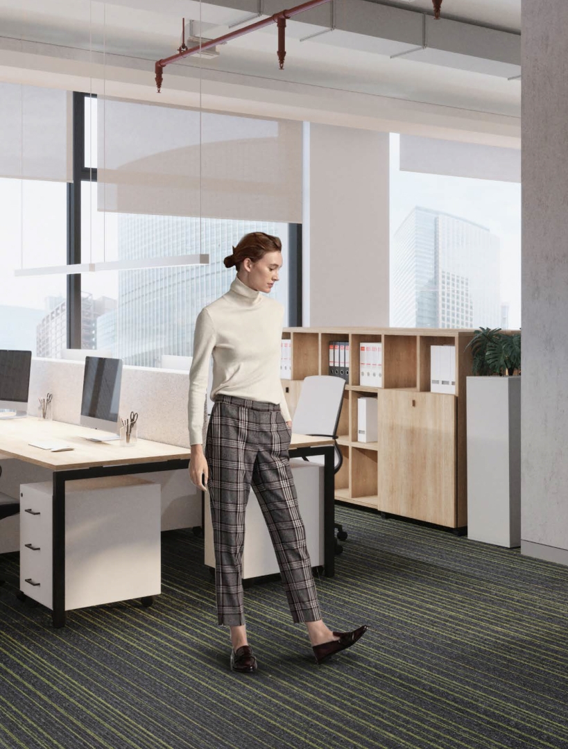 Офисное пространство организуется в соответствии с принципом модульности, которому подчиняются все элементы интерьера – перегородки, мобильная и стационарная мебель, освещение, инженерные системы.